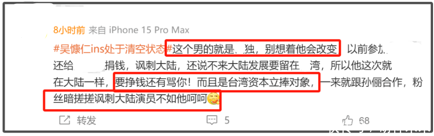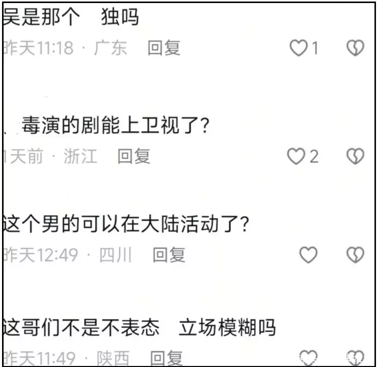 等到《危险关系》播出,只要一宣传吴慷仁,评论区就会有网友质疑他的立场。