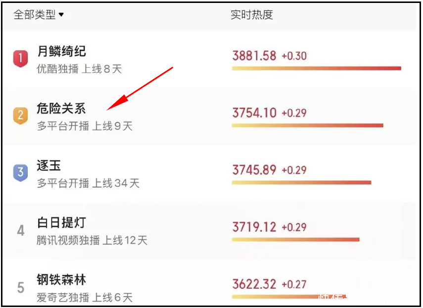 值得注意的是,配图显示的3700多热度并非《危险关系》最高热度,反倒是偏低的数据——当然还是不如《月鳞绮纪》。