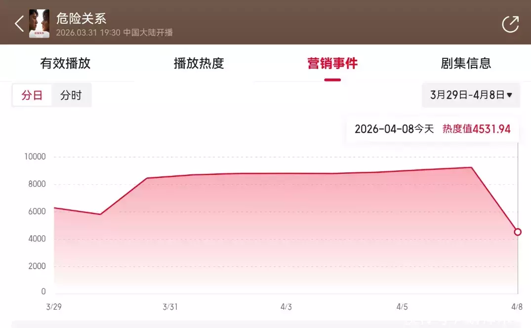 不知道是不是担心再次暴雷引发更大舆论,《危险关系》宣发力度远不及其他剧集,播放热度一路走低,直接陷入了恶性循环。